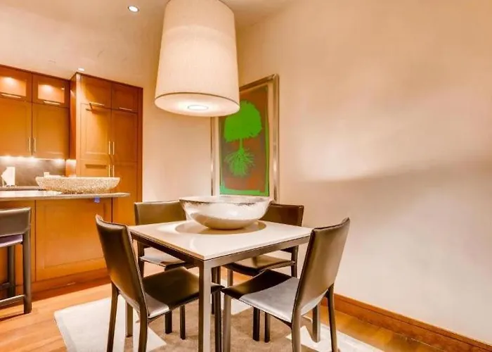 El Luxury Vail Solaris Studio Vacation Rental Set At The Base Of The Mountain Just Steps From The Gondola está situado en el distrito Vail, a 10 minutos a pie de la Gondola One. Los huéspedes pueden aprovechar el aparcamiento público por un costo adicional, cerca.